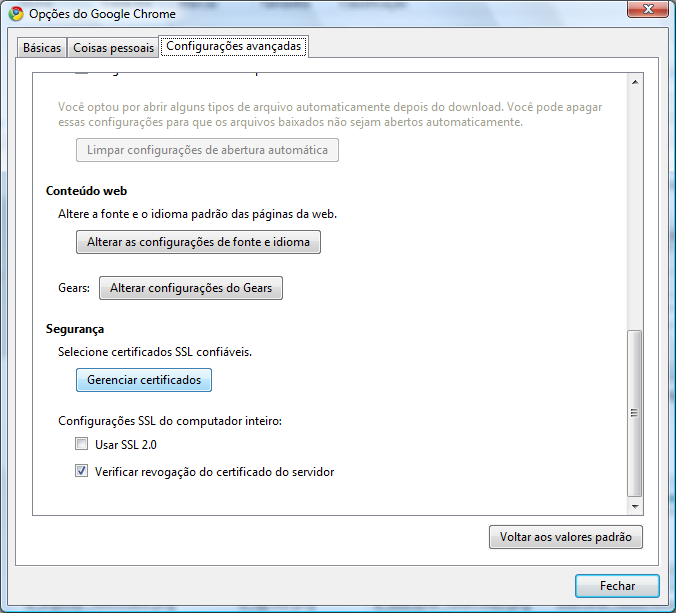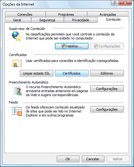Clicar no botão "Gerenciar certificados".