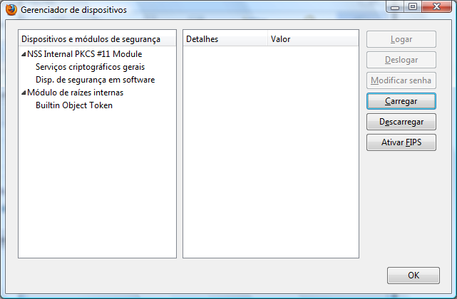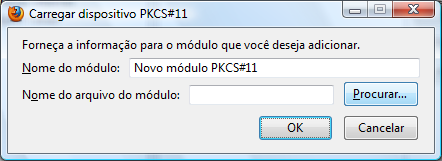 O Firefox necessita que seja feita a carga do módulo de segurança do token.