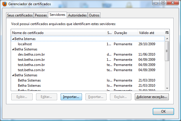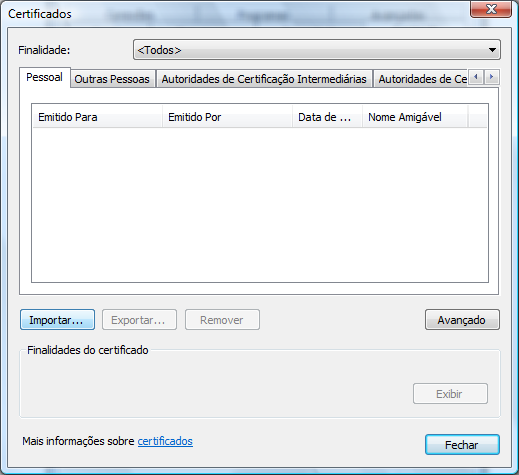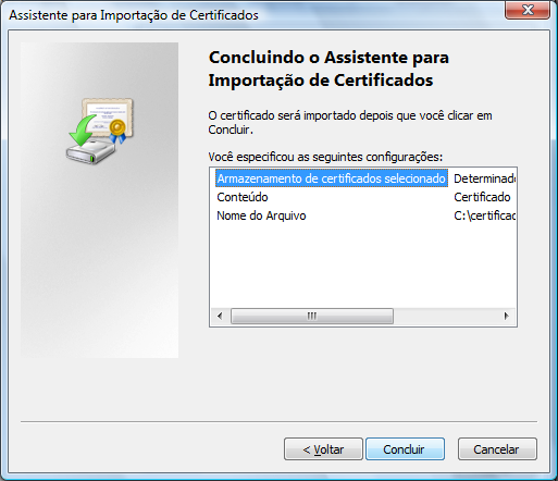Importação do certificado