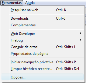 - Clicar no menu "Ferramentas" e selecionar "Opções".