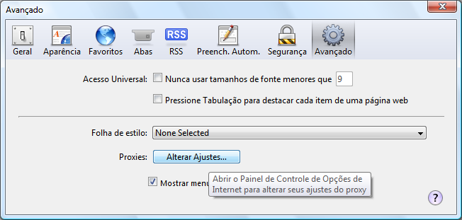 Clicar na aba "Avançado" e em seguida no botão "Alterar Ajustes...".
