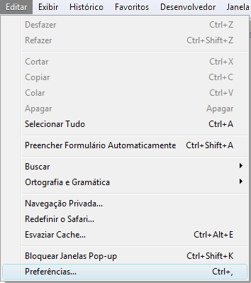 Clicar no menu "Editar" e selecionar "Preferências...".