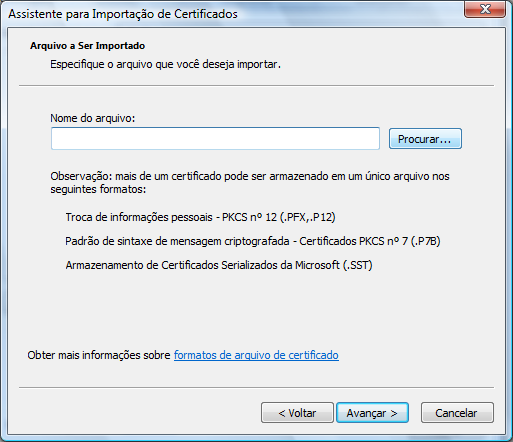 Importação do certificado
